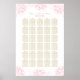 Das elegante Poster-Design der Pony-Hochzeitsstühle beinhaltet ein Monogramm der Braut- und Bräutigam-Namen und das Hochzeitsdatum, einen eigenen Vorlagentext für dreißig (30) Tischnummern und Gastnamen, sowie Pfleger mit handgezeichnet / skizzierter Optik. Die Farben beinhalten rosa Blütenbäume, Elfenbeinhintergrund und Goldtext.