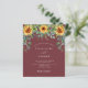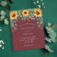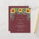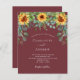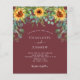 Roter Wein, maronfarbener Hintergrund mit Sonnenblumen, Eukalyptusgrün. Personalisieren und fügen Sie Ihre Namen und Party-Details.