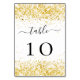 Ein eleganter weißer Hintergrund, mit Imitaten goldenen Glitzer Staub verziert. Personalisieren und Ihre Tischnummern. Das passende Dinner Menü ist in unserem Shop erhältlich!