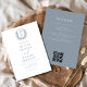 Mit einer formalen blumengeschmückten Einladung zum Wappen mit einem QR-Code für den einfachen Zugang zu Veranstaltungsdetails schaffen Sie einen zeitlosen Eindruck. Diese elegante Einladung verbindet klassische Blumenmotive mit einem personalisierten Wappen und verleiht Ihrem Hochzeitsthema eine raffinierte Touch. Der QR-Code vereinfacht RSVPs, Anweisungen und andere wichtige Informationen und bietet Komfort in einem modernen Format. Ideal für feierliche Hochzeiten, verbindet diese Einladung Tradition und Technik, um einen schönen und organisierten Tag zu garantieren.