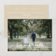 Schöne Foto Dankeschön Karte mit einem einfachen, modernen, minimalistischen "Danke & Liebe" Zitat-Banner auf einem halbtransparenten Overlay Hintergrund. Diese vielseitige Karte kann mit Ihrem eigenen Foto, Namen und Datum personalisiert werden, um eine wirklich einzigartige und maßgeschneiderte Karte für Ihren Liebsten zu machen. Die Rückmeldung "Liebe Freunde & Familie, Danke für die Unterstützung und das Teilen in unserem glücklichen Tag! Wir bedanken uns herzlich dafür, dass Sie Teil unserer Hochzeitsfeier sind und dass Sie uns ein wunderbares Geschenk gegeben haben. Ihre Überlegung und Großzügigkeit sind wirklich zu schätzen, wenn wir unser neues Leben gemeinsam beginnen, als Mr. & Mrs.<your last name>!" kann auch leicht mit Ihrer eigenen speziellen Botschaft aktualisiert werden. Die Karte zeigt ein Beispielbild eines Ehepaares an ihrem Hochzeitstag, die Ehefrau ist blonde und trägt ein Spitzenhochzeitskleid und der Bräutigam trägt einen scharfen, blauen Anzug. Sie laufen in einer Wiese, die von reifen Baumreihen gerahmt ist. Die Szene ist wild und romantisch. Diese Bilder sind als Platzhalter konzipiert, um durch Ihr Lieblings-Foto oder Familienbild ersetzt zu werden. Teil unserer beeindruckenden Foto-Kollektion mit einer Reihe von Aussehen und Stilen, schauen Sie sich bitte an!