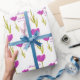Hübsches Hochzeitsverpackungspapier, ideal zum Umwickeln eines ganz besonderen Geschenks für die frisch gezapften oder zum Umhüllen von Gastgeschenke Hochzeiten. Schöner Single lila Tulpe Aquarellkunst, individualisiert mit Braut- und Bräutigamen und Hochzeitstag. Ideal für eine Frühjahrs- oder Tulpe-Blume Hochzeit. Einzigartig in Aquarellfarbe bemalt und von Sarah Trett entworfen.