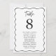 Elegante Double-Sided Wedding Tischnummer & Guest List Card mit Black Wavy Frame Script Design in Black & White Machen Sie mit dieser zweiseitigen Hochzeitskarte und der Gästekarte ein ausgeklügeltes Statement, mit einem anmutigen, schwarzen, wellenförmigen Rahmen auf beiden Seiten für einen polierten, konsistenten Look. Diese 5" x 7"-Vorlage ist in zeitloser Schwarz auf knackigem Weiß gestaltet und zeigt eine fett formatierte Serif-Tischnummer, kursiv formatierte Gastnamen und das Wort "Table" in einem handgeschriebenen Schriftart. Beide Seiten der Karte sind identisch, sodass Sie sich von jedem Blickwinkel aus leicht ansehen können - ideal für Hochzeiten, Jahrestage oder Verlobungsfeiern. Personalisieren Sie Ihre Gastnamen und -details, oder fordern Sie eine benutzerdefinierte Farbe an, die zu Ihrem Thema passt. Diese minimalistische Tischkarte ist Teil unserer koordinierenden Schwarz-Weiß-Hochzeitskollektion mit handgeschriebenen Schriftzeichen und verleiht Ihrer Feier eine raffinierte und moderne Touch!