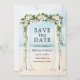Hochzeitsstrand Canopy Wasserfarbe Grün Weiße Blüt Save The Date