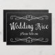 Einfaches und elegantes Chalkboard-Styling "Wedding Rice Please take one" Hochzeitszeichen. Das ist ein flaches 5" x 7" Kartenzeichen, das in einem Bilderrahmen sehr elegant aussieht.