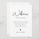 Moderner minimalistischer Hochzeitsempfang und Wochenendausstellung Timeline Programmkarte. Vorlagenfunktionen, Begrüßungsnachrichten auf der Vorder- und Wochenendreise auf der Rückseite. Die Zeitachse für Hochzeitstage umfasst Ringe, Cocktail, Mahlzeiten, Kuchen, Musiknote und Konfetti.