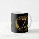 Ein Design, um 7 Jahre Ehe zu feiern. Dieses Design hat ein gelbes (die traditionelle Farbe für dieses Jubiläum) farbiges Lorbeerdesign auf einem schwarzen Hintergrund. Kupfer ist das traditionelle Geschenk für diesen Anlass, in den USA. Der Text liest Kupfer 7 Jahre Jubiläum. Ein romantisches Design, um Ihr 7. Jahr der Ehe zu feiern. Wenn Sie Hilfe bei der Anpassung dieses Designs möchten, kontaktieren Sie mich bitte, ihre ist ein frag dieser Designer-Schaltfläche, direkt unter diesem Text.