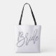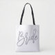 Überdrucktaschen für Hochzeit, Junggeselinnen-Abschied oder Brautparty mit Silbereffekt (Imitate, als Bild gedruckt) auf weißem Hintergrund. Der Totbeutel ist aus Polyester und misst 16 Zoll x 40 cm, der Gurt misst 28 Zoll.
