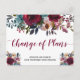 Hochzeitstermin verschoben Burgundy Navy Floral Ankündigungspostkarte