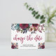 Hochzeitstermin verschoben Burgundy Navy Floral Ankündigungspostkarte