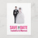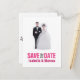 Wenn Sie kitsch, aber definitiv alle modern sind, ist dies eine großartige Save the Date Postkarte, die ein wenig Spickzack vermitteln könnte. An der Vorderseite befindet sich ein Retro-Bräunungs- und Bräutiguchtopper, der jedoch alle zeitgemäß ist. Individuelle Details Ihrer Veranstaltung gehen zurück. Erhältlich in alternativen Farben mit passenden Produkten.