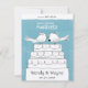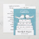 Niedliche Weißvögel brächen und küssen auf vier gestaffelten Hochzeitstorten. Eine süße Hochzeit speichern Sie das Datum Ankündigung, die leicht mit Ihren eigenen Namen und Informationen personalisiert werden kann. Diese Liebesvögel sind Teil einer Hochzeitsthemensammlung von Jenn’s Doodle World.