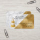 Elegante Hochzeit- und besondere Anlass-Kuchen-Backkarte in einem modernen Halbmarmor und in einem halben goldfarbenen Hintergrund. Ein Foto eines Goldkuchens und eines Weißkuchens schmückt die untere links Kartenecke. Custom Black Text ist bereit, um für Ihre Bäckerei Geschäft personalisieren.