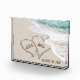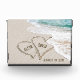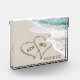 Herzensverhältnis im Strand Sand mit Namen und schaumige Ozeansurfen. Text kann bearbeitet werden. Das Produkt kann für Neuvermählte oder zum Ehepaar-Jubiläumsgeschenk verwendet werden.