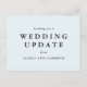 Müssen Sie Ihre Hochzeit wegen unglücklicher Umstände absagen oder verschieben? Desaster wie Pandemien, natürliche Desaster, Krankheiten, Todesfälle können einem großen Tag einen erdrückenden Schlag versetzen. Senden Sie eine Nachricht an Freunde und Familie mit dieser einfachen und geschmackvollen Postkarte. Auf der Rückseite befindet sich ein großer Textblock mit Textvorschlag. Sie können es auch unterschreiben. Das blaue und schwarze Farbschema kann durch Klicken auf "Weitere Anpassung" geändert werden. Auch arbeitet für andere Veranstaltungen, die verschoben werden müssen, wie Graduiertenfeiern, Proms, Fundraisers, Galas, Wiedersehen und mehr.