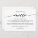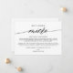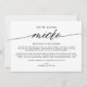 Moderne einfache Hochzeitsaktualisierungskarte. Das Design beinhaltet das kalligraphische Skript ''We going micro'' und Details in trendiger Hauptstadt. Perfekt für Hochzeitsaktualisierungen, kleinere Hochzeitsankündigungen oder Downsizing Ankündigung.