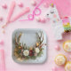 Hirschgeweihe mit lebhaften Blume und Grünpflanzen schaffen eine auffallende Wanddekoration, während sanfte, warme Lichter durch die Anordnung gewebt werden, was die natürliche Eleganz der Blumenausstellung verstärkt.