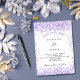 Ein weißer Hintergrund. Mit violettem, lavenfarbenem Imitat Glitzer dekoriert. Personalisieren Sie Ihre Namen und Details und fügen Sie diese hinzu.