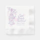 Niedliches Vogelpaar in Line-Art Grafik gezeichnet von einem offenen Vogelkäfig, der an einem blühenden Frühlingsbaum mit Herz hängt. Modernes, schicke Hochzeitsdesign im Vogelkäfig - romantisches Hochzeitsfest-Set. Hübsche Pastelltöne lila und sanft rosa. Bearbeiten Sie diese Hochzeitserviette mit Ihrem eigenen Brautennamen und Ihren Hochzeitsdaten. Einfache, aber elegante Papierserviette ist eine personalisierte Ergänzung zu unseren Hochzeitstischen. Lest Drink essen und Verheiratet sein. Einzigartiges zeichn und Design von Sarah Trett.