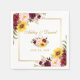 Die eleganten Napkins-Hochzeitsflora-Rose in Watercolor sind bordeauxrote Marsala, Rosen, rote Rosen, Sonnenblumen und botanische Vegetation. Goldenes Drehbuch.