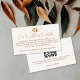 Ein kleiner Zweig von Kupferbuche-Fallen-Blattwerk in Aquarell und ein Kupfer- und Rostfarbschema schmücken diese elegante, einfache, klassische und moderne Hochzeit im Herbst-Umschließkarte mit QR-Code. Es zeichnet sich durch moderne, elegante Skriptkalligraphie mit großem Schnörkel aus. Luxuriös aber einfach, klassisch, aber elegant, modern, aber zeitlos. Eine schöne Wahl für Herbst- oder Herbsthochzeiten mit Kupfer, Orange, Terrakotta, Beige, Rot, Orange und anderen Herbsttönen.