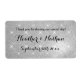 Maßgeschneiderte Silberne Glitzer Hochzeitswein oder Quellwasser Flaschen Etiketten. Personalisierte, elegante Wasserflaschenaufklebervorlage mit funkelnd Hintergrundstruktur. Extravagante Skripttypografie für Namen von Braut und Bräutigam und danke Ihnen Nachricht. Verwenden Sie als klassische Tischdekoration oder danken Sie für die Gäste des Party. Enthält Name oder Monogramm plus Heiratsdatum. Imitate silbrigen Design mit funkelnd Glitzern und glitzernden Glittern. Auch gut für extravagante Verlobung oder Jubiläum Ansammlung. Mit dieser glänzenden DIY-Vorlage erstellen Sie Ihre eigenen Mineralwasser-Etiketten. Anpassbare Hintergrundfarbe.