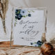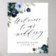 Aquarellfarben staubblaue und marineblaue Blumen und schwarze Schrift. Der Text und die Farben auf diesem Hochzeitsschild Poster können bearbeitet werden.