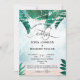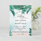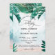 Planung einer Hochzeit am Strand der tropischen Insel? Die schöne Einladung mit hellen, glänzenden Feenleuchten und tropischen Blätter aus Palmen auf Sand- und Meeresgrund