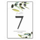 Diese Hochzeitsfeier Tischnummer ist mit Olivenbäumen in Aquarelltönen gestaltet. Verwenden Sie die einfachen Vorlagenfelder, um Ihre individuelle Namen, das Hochzeitsdatum und die Tischnummern hinzuzufügen. Besuchen Sie www.zazzle.com/dotellabelle Kunst und Design der Wasserfarben von Victoria Grigaliunas, um die komplette rustikale Hochzeitssuite zu sehen