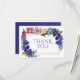 Aquarellfarbene Blumenstruktur mit tiefblauen/violetten Blumen, ergänzt durch rote Blume mit einem rechteckigen Rahmen. Tief lila Rückseite. Alle Typ- und Hintergrundfarben sind anpassbar.