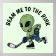 Bringen Sie einen intergalaktischen Flair mit unserem Poster mit einer Alien, die mit einem Eishockeystick über einen Puck schlüpft. Das Design erfasst den Geist des Spiels und fügt eine Touch kosmischen Charmes hinzu. Über der Alien lädt die Phrase "Beam Me to the Rink" spielerisch zum Vergnügen ein. Ideal für Hockey-Liebhaber und Science-Fiction-Liebhaber.