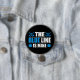 Hockey Blue Line Knopf zeigt blaue Pucks und Hockey Sticks mit weißem und blauem Text, der die Blue Line is Mine ausliest.