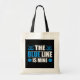Hockey Blue Line Tote-Tasche mit blauen Pucks und Hockey Sticks mit weißem und blauem Text, der The Blue Line is Mine.