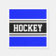 Dieses kühn sportliche Design bietet athletischen Hockey-Text in einem breiten schwarzen Mittelstreifen, der mit doppelweißen Rennstreifen gegen leuchtend königsblaue Hinterstreifen hervorgehoben wurde. Die Farben und Texte in diesem Design können personalisiert sein.