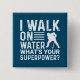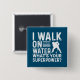 Hockey-Player-Taste mit einem humorvollen Sprichwort mit weißem Text auf blauem Hintergrund und einem Hockeyspieler mit weißer Silhouette. Der Text auf dieser Hockeyspieltasche liest I Walk on Water Was ist Ihre Supermacht?