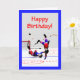 Eine Geburtstagskarte mit meinem original digitalen Kunstwerk von zwei Hockeyspielern in verschiedenen Bühnen des Ausrittens und Fallens, für Hockeyfans und Spieler. Im Text steht: "Herzlichen Glückwunsch zum Geburtstag!"