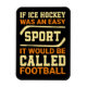 Der Hockey-gegen-Fußball-Magnet enthält Text aus Gelb und Gold und zwei Hockeyschläger. Dieser Hockeyspieler-Magnet liest sich, wenn Eishockey ein leichtes Sport wäre, würde es Fußball heißen!