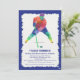 Eine trendige Einladung mit einem Hockeyspieler in geometrischer Form mit grunblauem Rahmen. Ideal für jeden Altershockey-Fan.