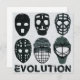 Design zeigt die Evolution von Eishockeygoalie Masken aus den späten 50er Jahren, als sie zum ersten Mal getragen bis zum heutigen Tag.