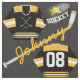 Hockey Player Jersey Puck und Stick Name Number Stoff