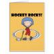 Hockey schaukelt T - Shirts, Tassen, Magneten, Karten, Aufkleber, Taschentaschen, Hoodies, und, einen männlichen Hockeyspieler des Strichmännchens mit Skaten, ein Hockeystock und Sturzhelm und Text kennzeichnend, der "Hockey-Felsen!" liest.