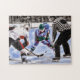 Hockey-Spieler und Referent stellen weg gegenüber Puzzle