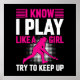 Hockey Play Like a Girl Poster verfügt über eine Silhouette Hockey-Spieler und Text liest I Know I Play Like a Girl Versuchen, Behalt Up!