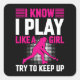 Hockey Play Like a Girl Aufkleber verfügt über eine Silhouette Hockey-Spieler und Text liest I Know I Play Like a Girl Versuchen, Behalt Up!