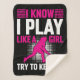 Hockey Play Like a Girl Sherpa Decke verfügt über eine Silhouette Hockey-Spieler und Text liest I Know I Play Like a Girl Versuchen, Behalt Up!