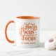 "Hocus pocus, ich brauche Wein zum Fokussieren (oder starken Kaffee)" Sprichwort in orange auf beiden Seiten einer Kaffeetasse gedruckt, Spaß zu Halloween für Damen oder Herren.