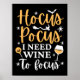 Hocus Pocus I Need Wine to Focus - Funny Halloween Poster