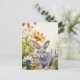 Ein graues Kaninchen sitzt unter lebendigen Wildblumen, darunter gelbe und weiße Blüten. Die Szene fängt eine ruhige und skurrile Natur mit dem Kaninchen als Brennpunkt ein. Digitale Kunstfotografie CS5