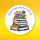 Einen guten Tag mit diesen Umschlag Aufkleber-Aufklebern wünschen, jemandem einen neuen Tag wünschen. Grafik einer Aquarellbilderei eines Stapels von hübschen Vintagen Büchern, die mit blauen und gelben Blumen bedeckt sind, in einem ai-Aquarell-Stil.
