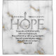 Das Wort "Hoffnung" ist in weißem, grauem und goldenem Marmor gemeißelt.